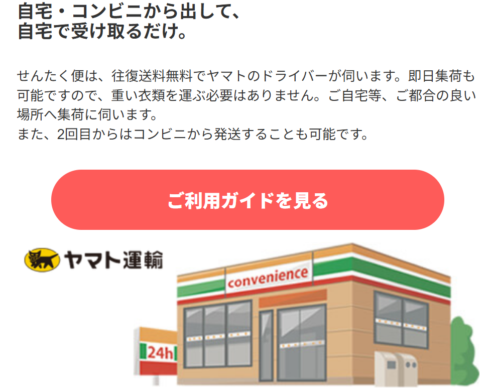 「せんたく便」は、家にいながらクリーニングの依頼ができる宅配クリーニングサービスです。